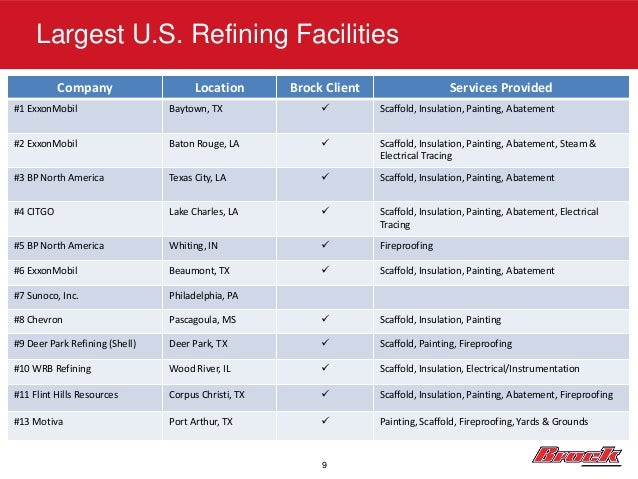 The Brock Group Overview The Brock Group | Baton Rouge Open House. Beaumont Corporate Groves, TX Pekin, IL Ashdown, AR Houston, • Full turnkey insulation and asbestos abatement services for maintenance, capital projects, outages, tanks, ... Read Document